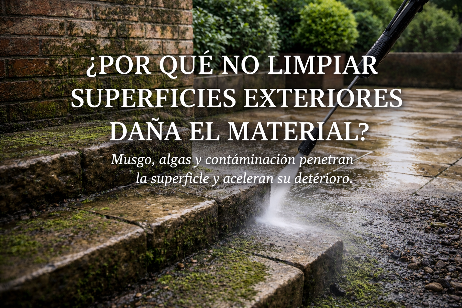 No limpiar superficies exteriores no es solo un tema estético: es un problema de conservación del material y del valor de la propiedad.